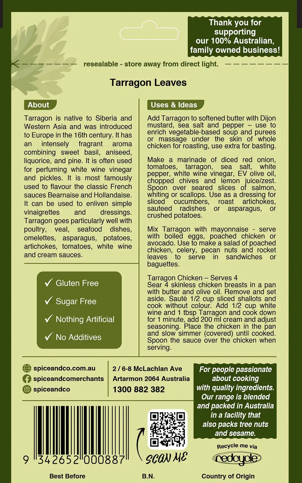 Add Tarragon to softened butter with Dijon mustard, sea salt and pepper – use to enrich vegetable-based soup and purees or massage under the skin of whole chicken for roasting, use extra for basting.